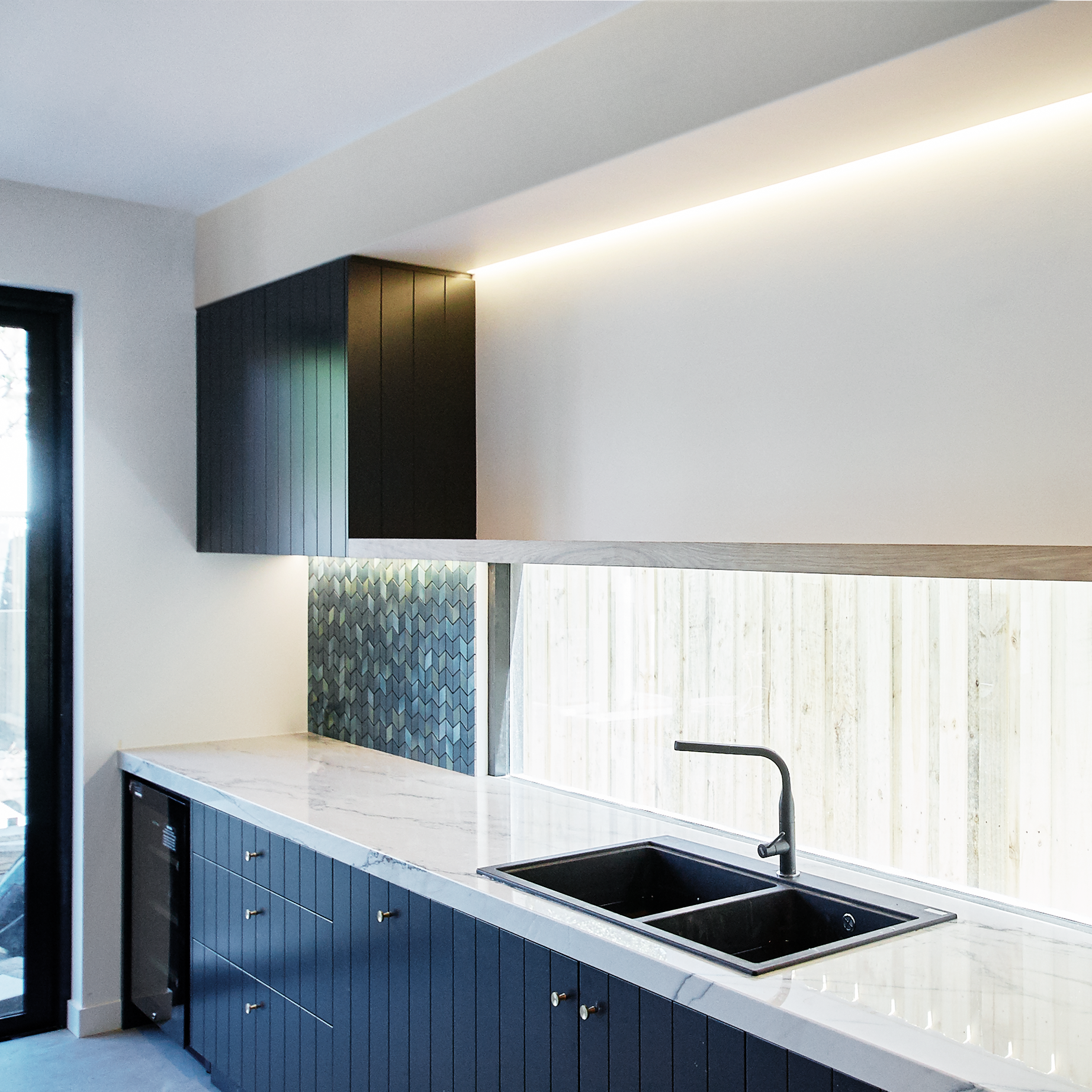 Shadowline incorporates a dedicated opal diffuser and can be optioned with either high output or super high output LED ribbon. Available in either 1500mm or 3000mm lengths.